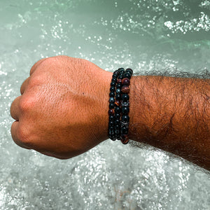 New take on an old classic. This carefully crafted stack incorporates Red Tiger Eye with highly polished Onyx.